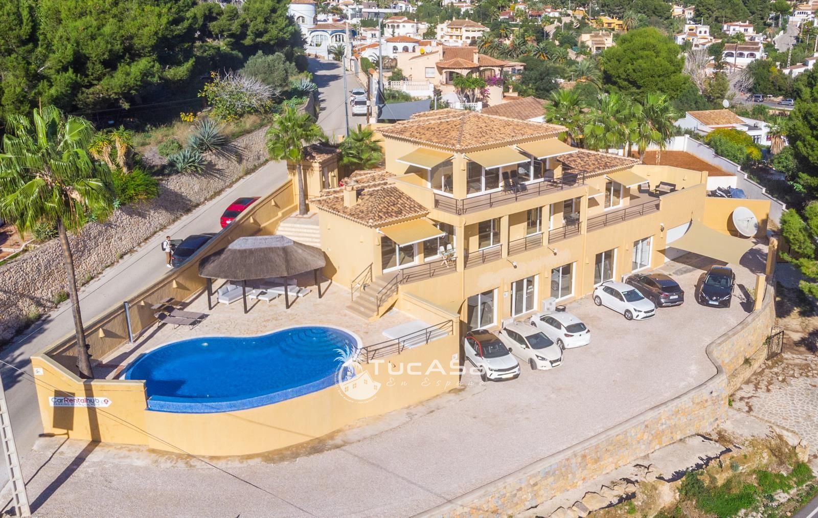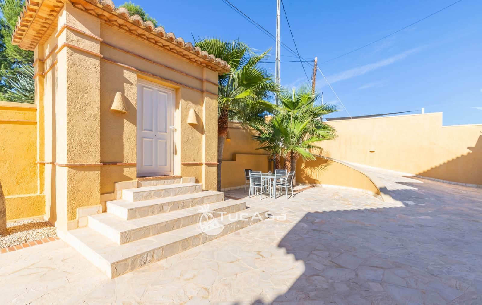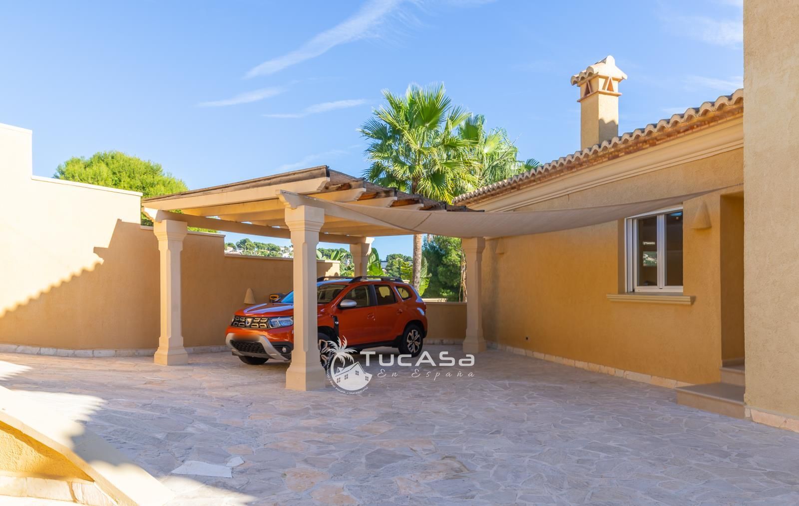 Upon entering the property via electric gates, or by the pedestrian entrance, we find ample parking and access to the main living area and guest accommodation. The two living spaces are also connected internally and could easily be converted back into one single living space if desired.