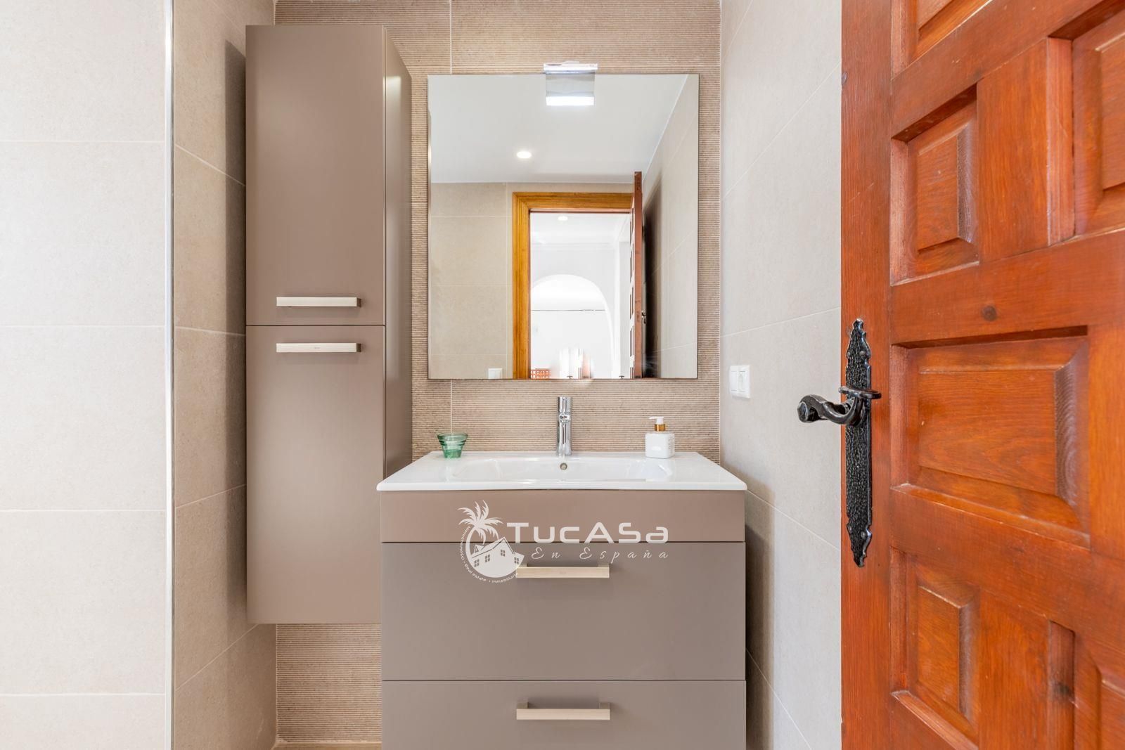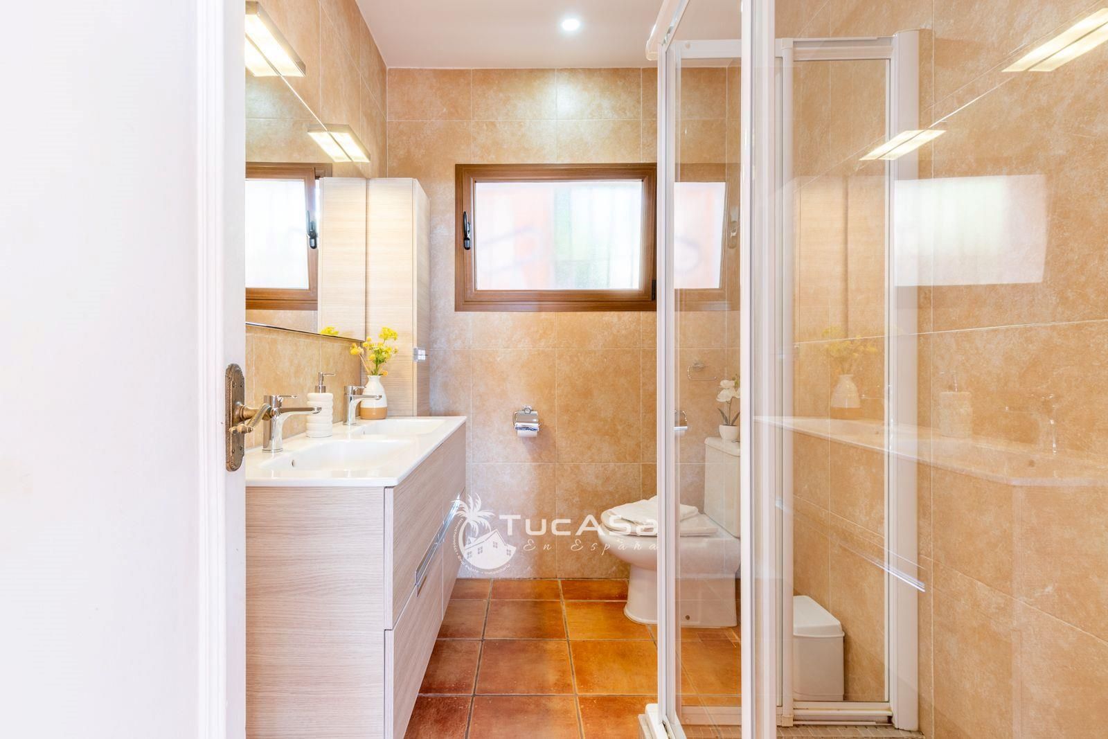 La planta baja consiste en dos dormitorios encantadores, un moderno baño, una cocina separada y un comedor con acceso a una terraza privada que da a un jardín lleno de vida, adornado por árboles frutales que completan este paraíso personal.
