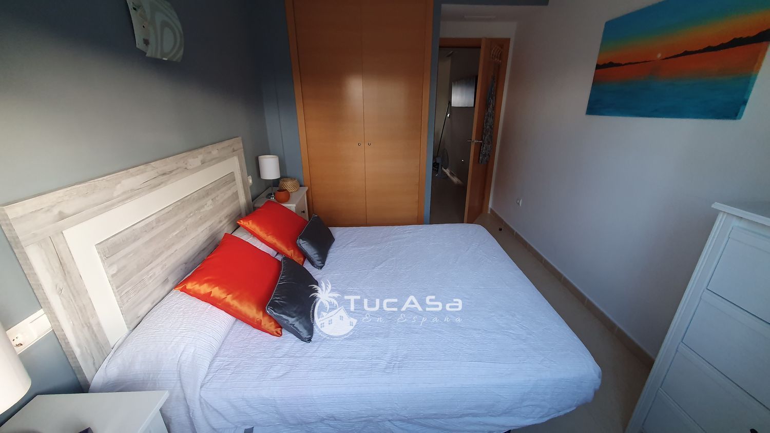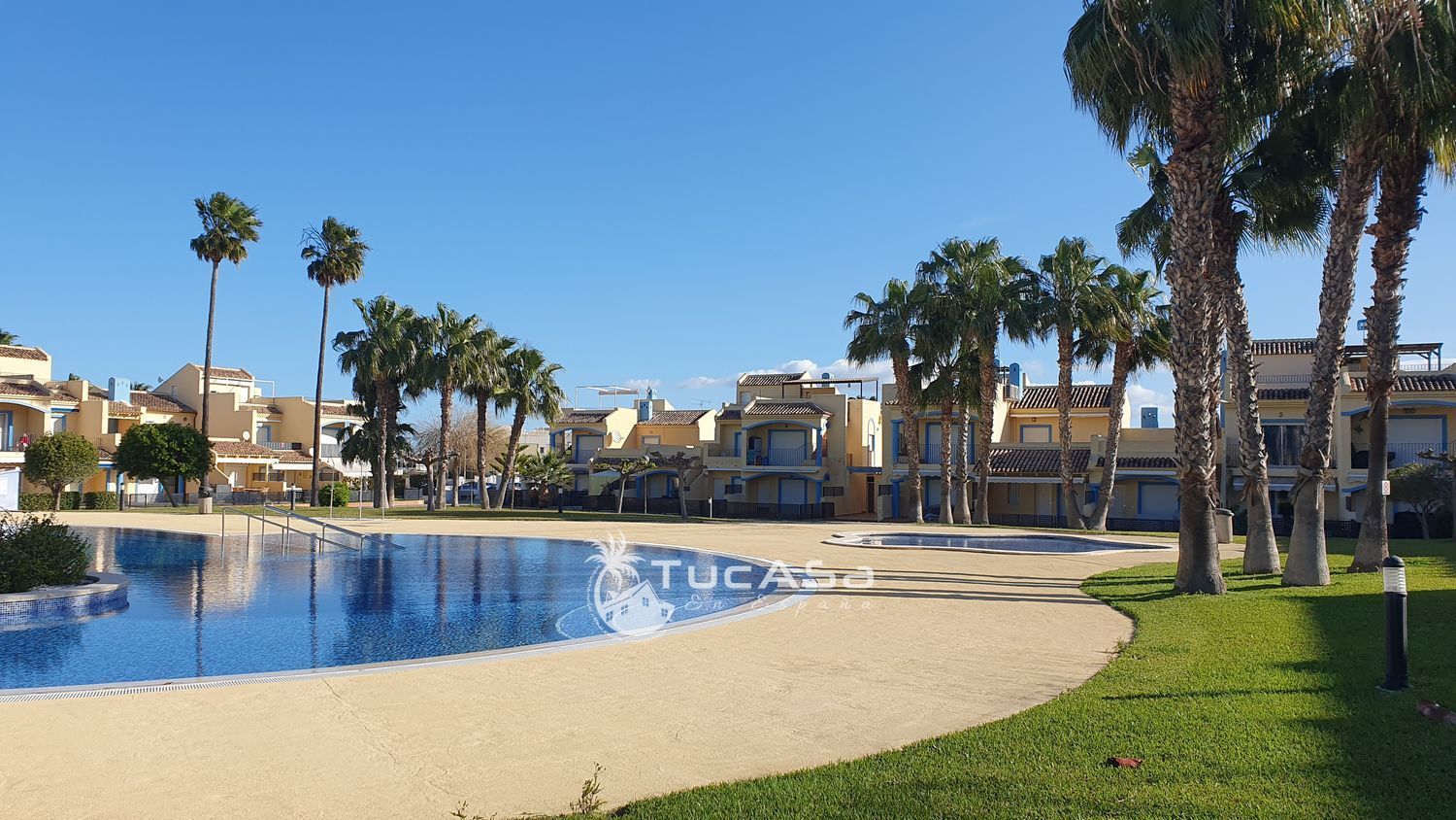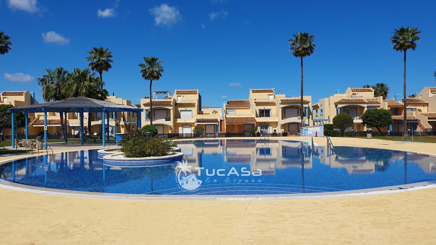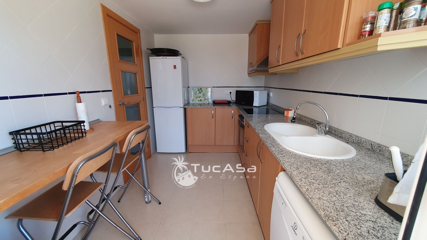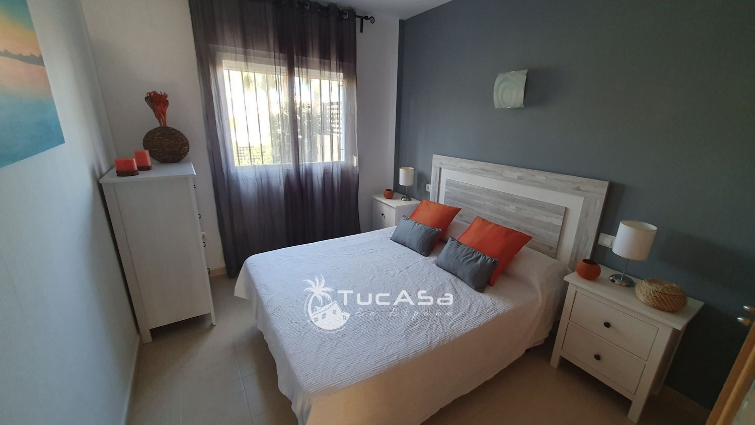 Precioso apartamento en planta baja con jardín privado. Totalmente amueblado, con electrodomésticos y alta en suministros de agua y luz; para entrar a vivir. Cuenta con cocina independiente con acceso a balcón-corredor abierto en fachada principal con armario de almacenaje/escobero y tejadillo para zona de lavandería. Dos dormitorios con armarios empotrados, dos baños (uno con plato de ducha y el otro con bañera). Amplio salón con salida a la terraza cubierta y jardín de uso privado, con acceso directo a las zonas comunes de la urbanización. Éstas constan de una amplia pradera, dos piscinas (una de ellas infantil), pista de pádel, pequeño parque para los niños y pérgola cubierta.