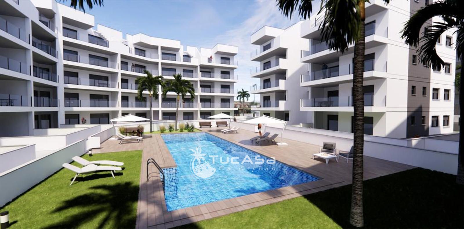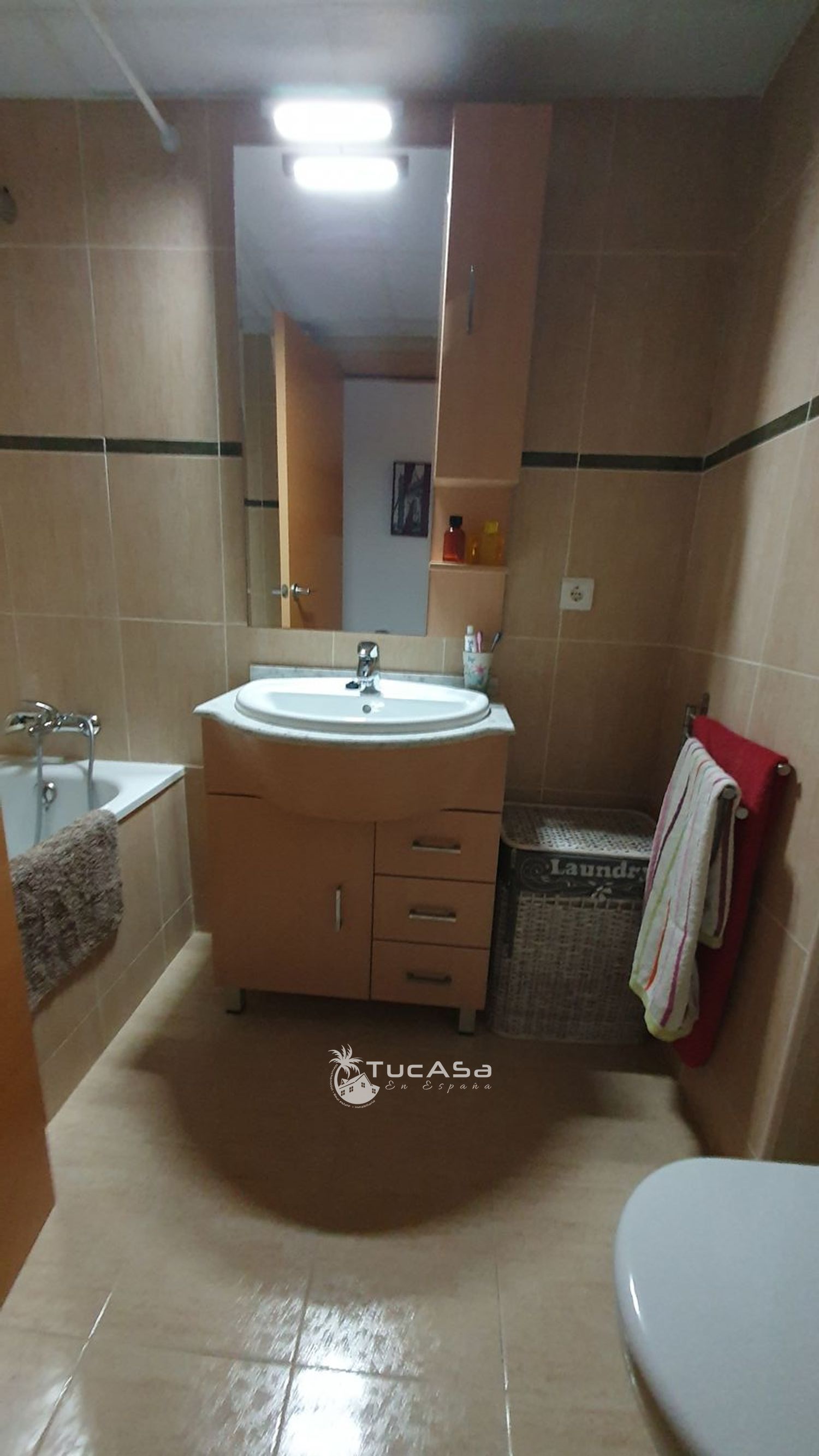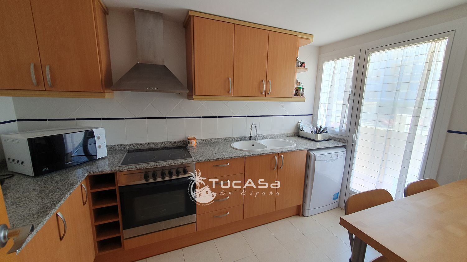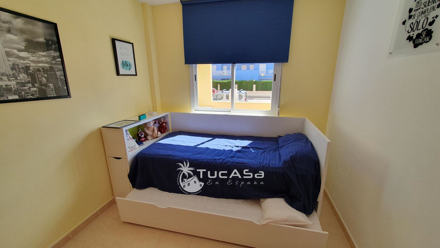 Precioso apartamento en planta baja con jardín privado. Totalmente amueblado, con electrodomésticos y alta en suministros de agua y luz; para entrar a vivir. Cuenta con cocina independiente con acceso a balcón-corredor abierto en fachada principal con armario de almacenaje/escobero y tejadillo para zona de lavandería. Dos dormitorios con armarios empotrados, dos baños (uno con plato de ducha y el otro con bañera). Amplio salón con salida a la terraza cubierta y jardín de uso privado, con acceso directo a las zonas comunes de la urbanización. Éstas constan de una amplia pradera, dos piscinas (una de ellas infantil), pista de pádel, pequeño parque para los niños y pérgola cubierta.